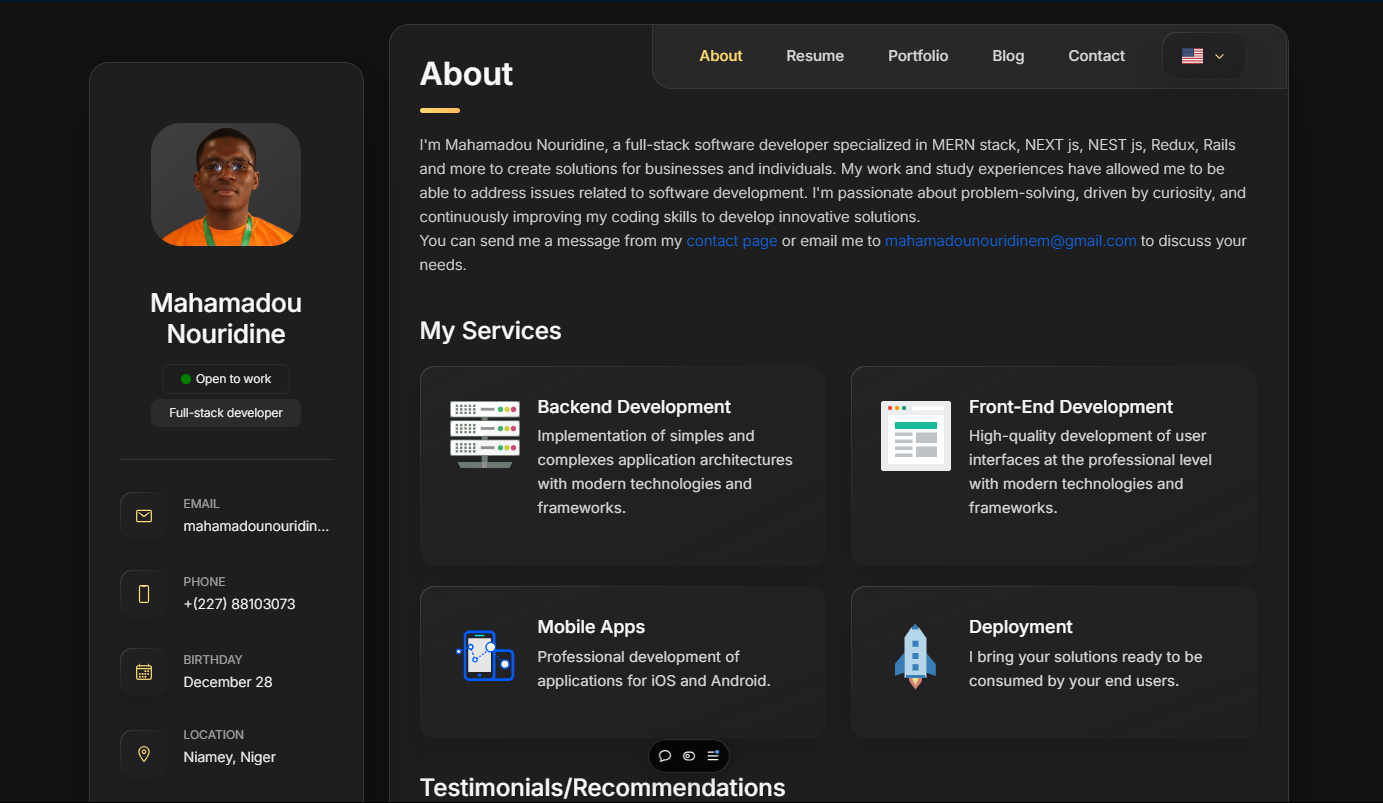 PortfolioFILTER WITH TAGSAllFull-stackJavaScriptNext.jsExternal APIExpressMongoDBDatabaseWebMERNPrivateAuthenticationCollaborationAWSProfessional ExperienceAuthorizationReactBootstrapFront-endMaterializeGCPTrainingDesktopSelect TagAllFull-stackJavaScriptNext.jsExternal APIExpressMongoDBDatabaseWebMERNPrivateAuthenticationCollaborationAWSProfessional ExperienceAuthorizationReactBootstrapFront-endMaterializeGCPTrainingDesktopMy PortfolioTAGSFull-stackJavaScriptNext.jsExternal APIExpressMongoDBDatabaseWebMERNIntra CodeloccolTAGSPrivateFull-stackJavaScriptNext.jsAuthenticationExternal APIExpressMongoDBDatabaseWebCollaborationAWSProfessional ExperienceMERNAuthorizationCodeloccol WebsiteTAGSPrivateFull-stackJavaScriptReactExternal APIExpressAuthenticationMongoDBDatabaseWebCollaborationProfessional ExperienceMERNAuthorizationSahelian Dev WebsiteTAGSPrivateFull-stackJavaScriptExpressMongoDBDatabaseReactWebCollaborationProfessional ExperienceBootstrapMERNAuthorizationMyTube AppTAGSFront-endJavaScriptReactMaterializeExternal APIGCPWebTrainingHadj AppTAGSFront-endJavaScriptReactAuthenticationExternal APIDesktopBootstrapAuthorizationTraining